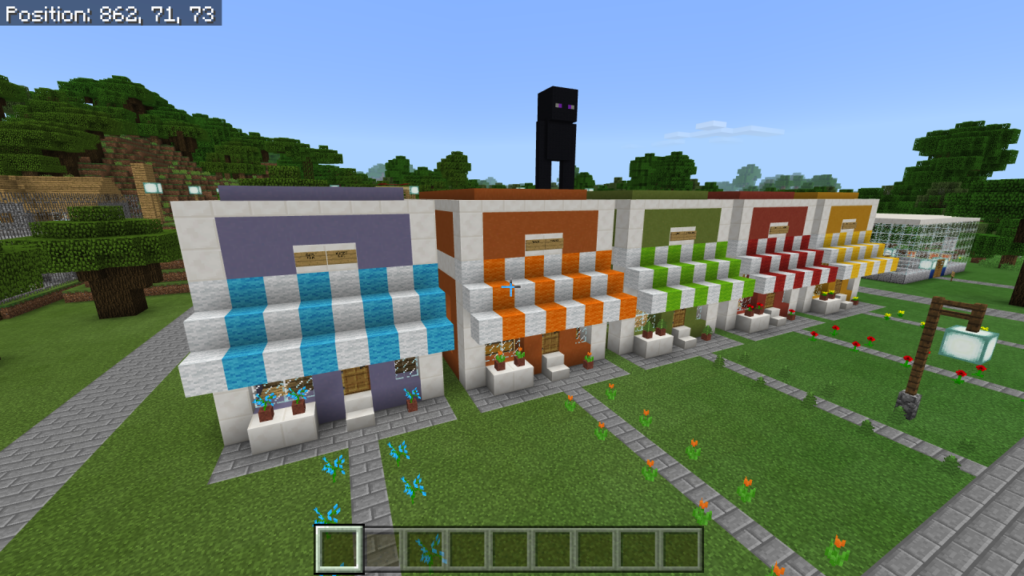 In many multiplayer Minecraft servers, especially those focused on survival or economy, players create shopping districts where they can build shops and trade with others. These districts help centralize player-to-player commerce and create a hub for trading resources, items, and gear.